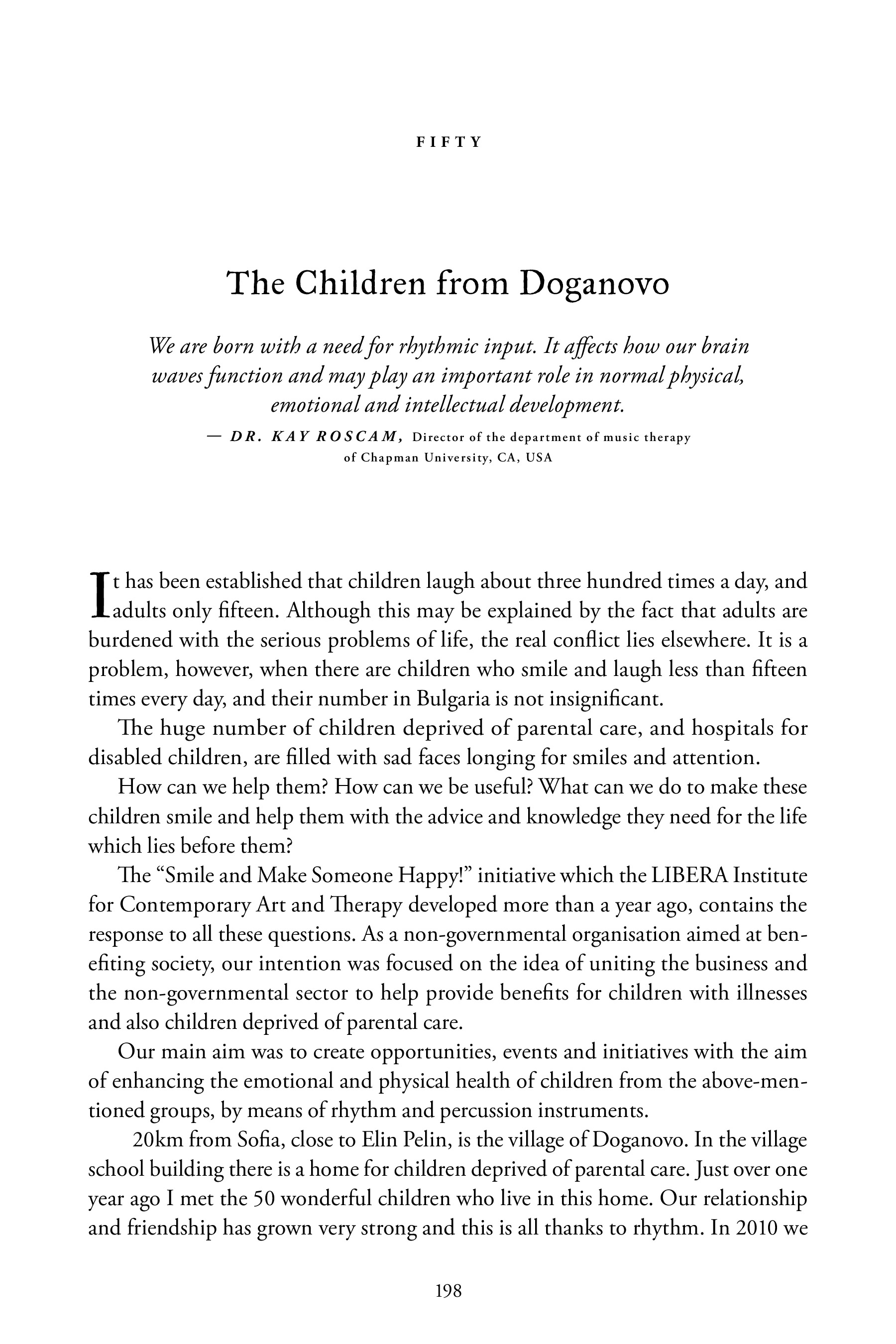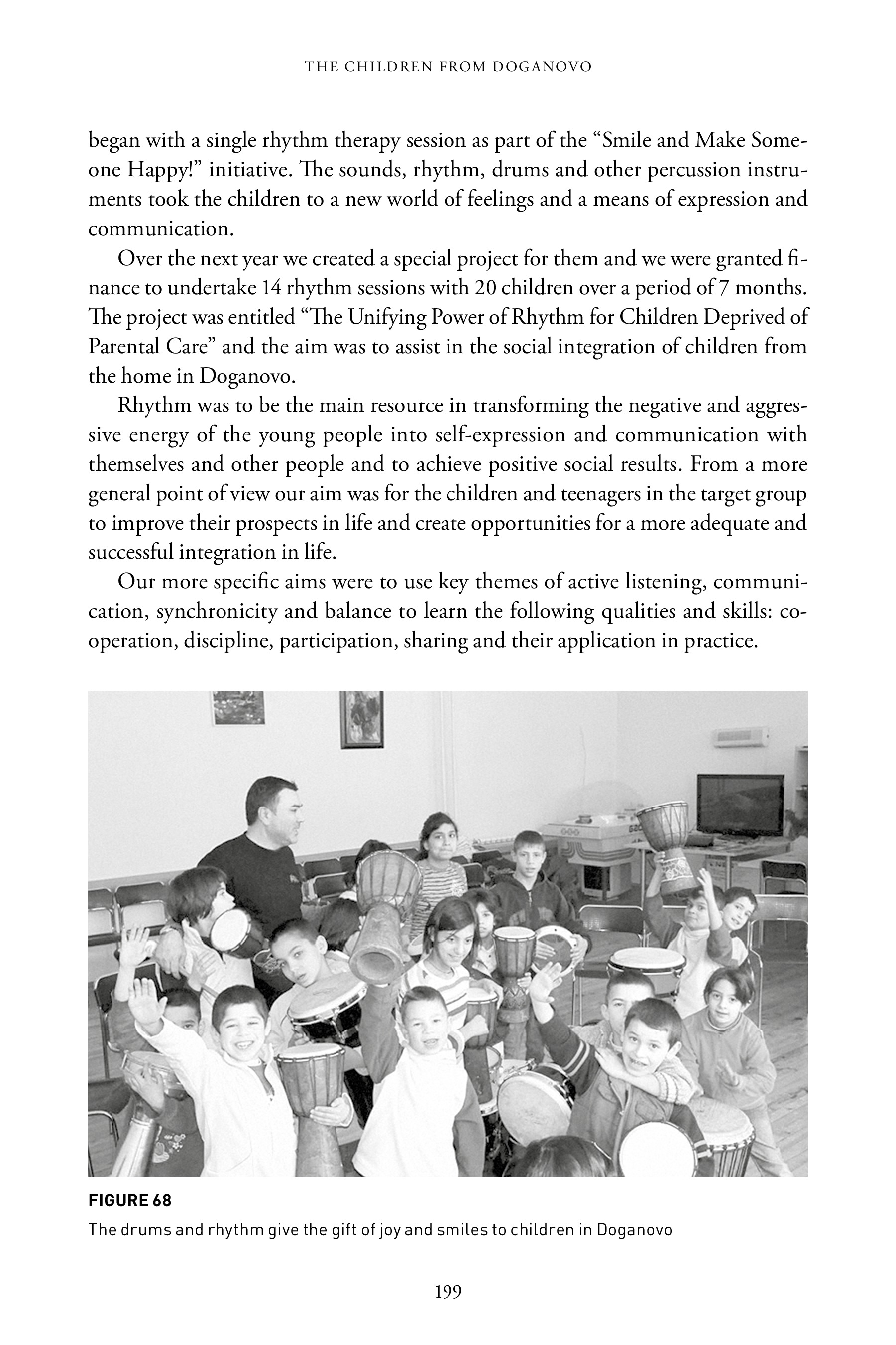 20 km. from Sofia (the capital of Bulgaria), close to Elin Pelin, is the village of Doganovo. In the village school building there is a home for children deprived of parental care. Just over two years ago I met the 50 wonderful children who live in this home. Our relationship and friendship has grown very strong and this is all thanks to rhythm. We began with a single rhythm therapy session as part of the “Smile and Make Someone Happy!” initiative. The sounds, rhythm, drums and other percussion instruments took the children to a new world of feelings and a means of expression and communication.